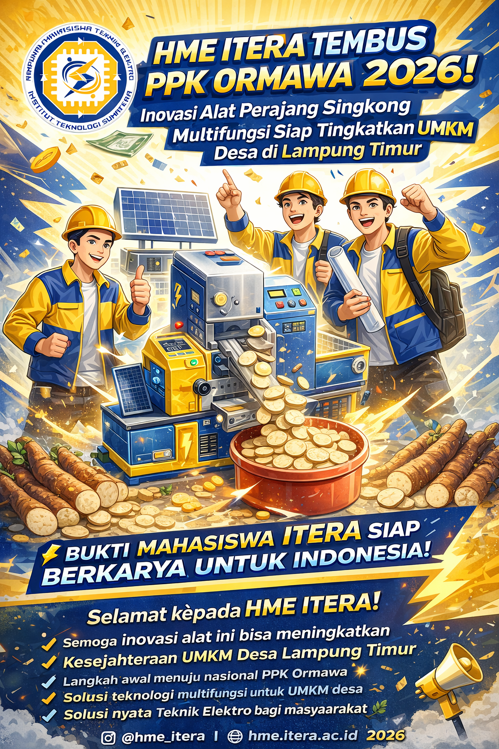 Dengan inovasi ini, tim HME ITERA berharap dapat membantu pelaku UMKM di Desa Sindang Anom, Lampung Timur meningkatkan kapasitas produksi serta kualitas produk olahan singkong.